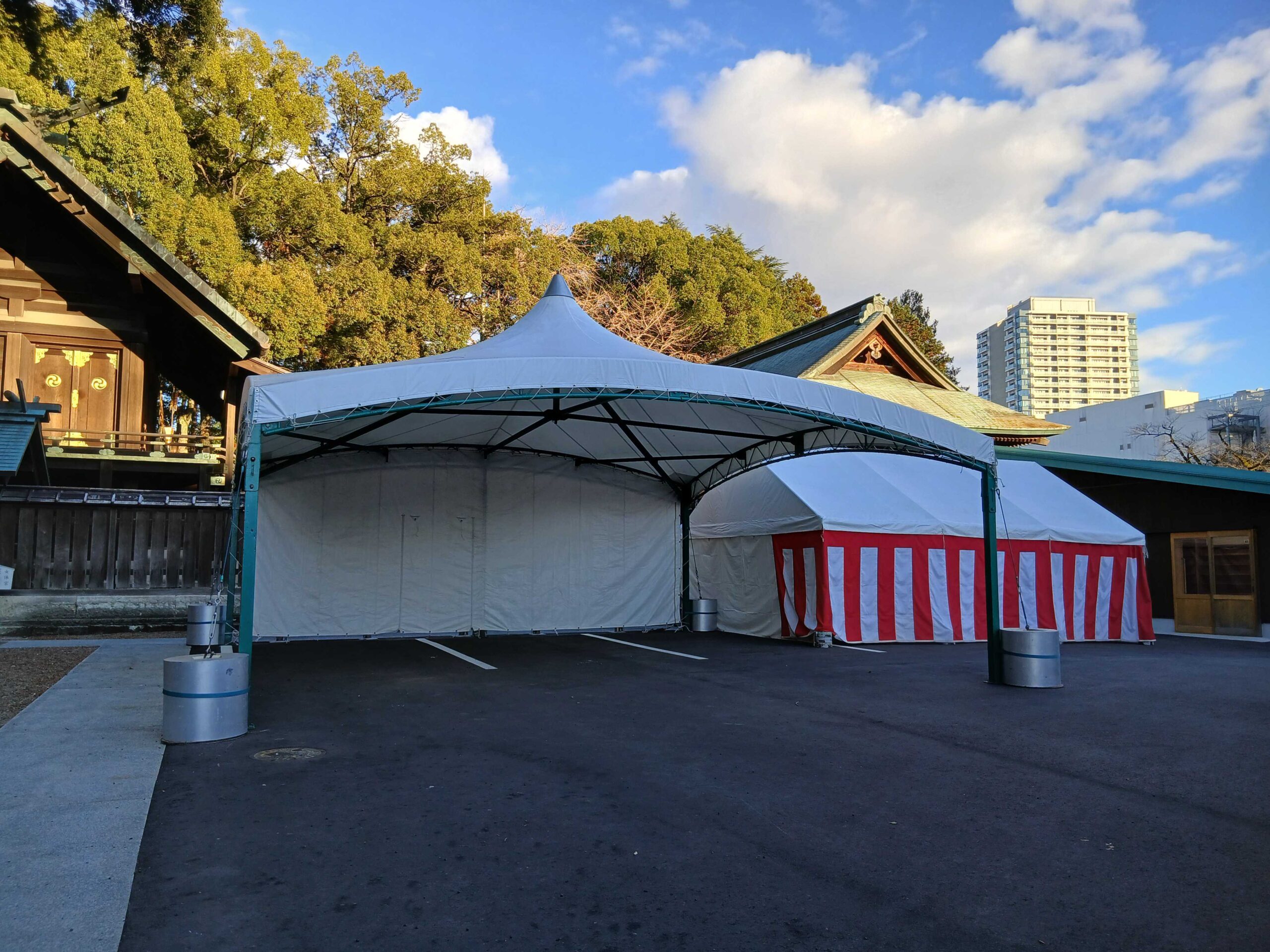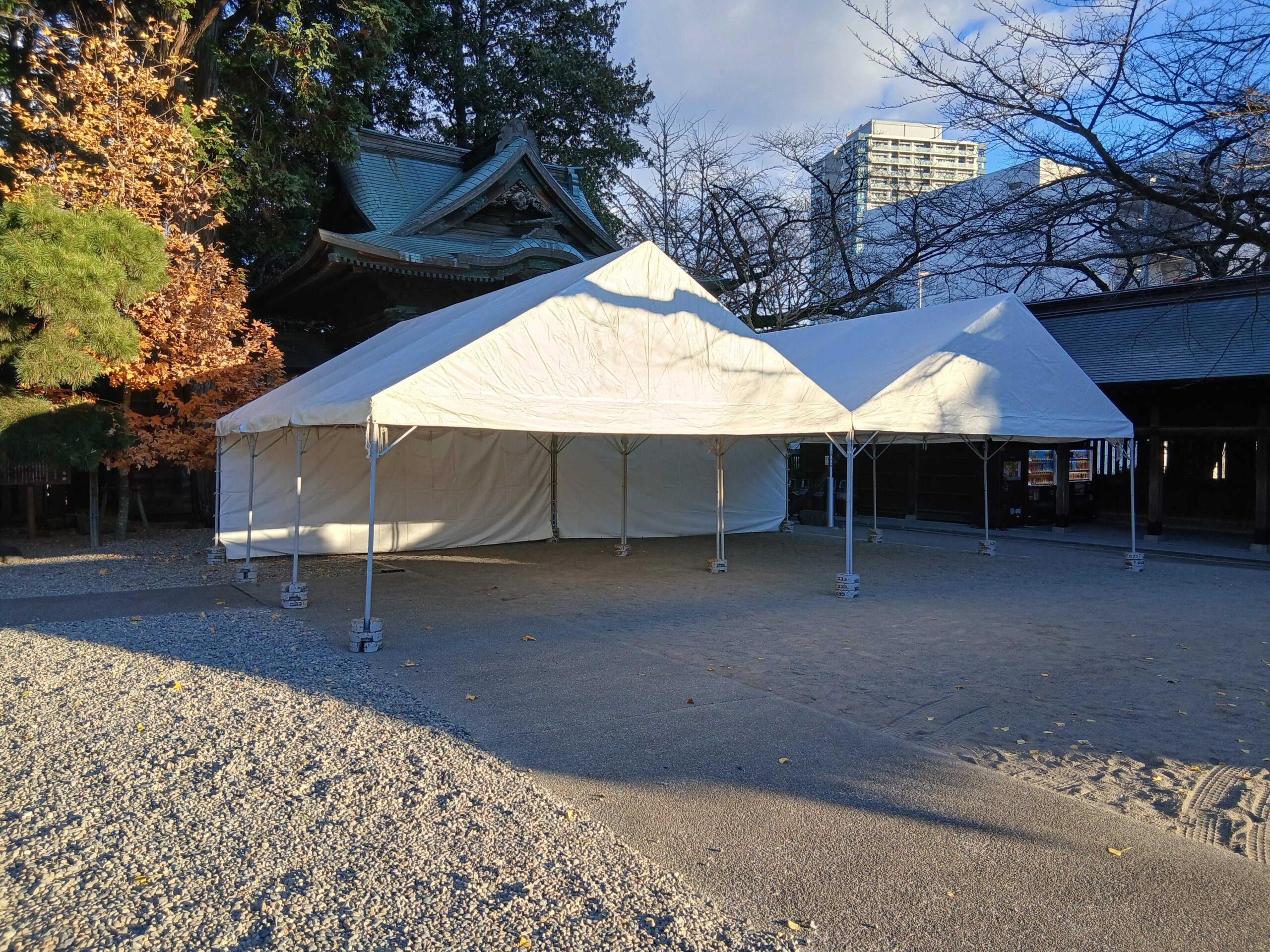 宇都宮の二荒山神社で年末に使用するテントやプレハブなどの施工を行いました。